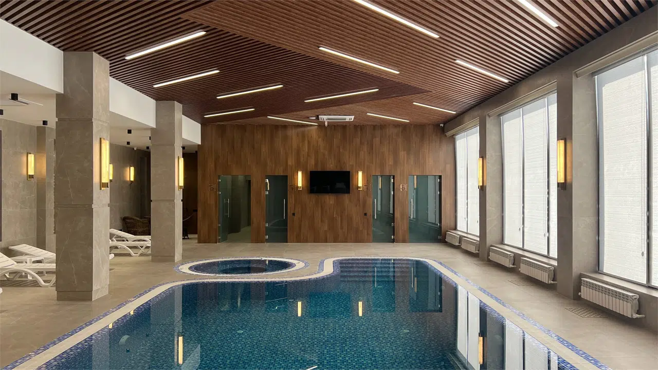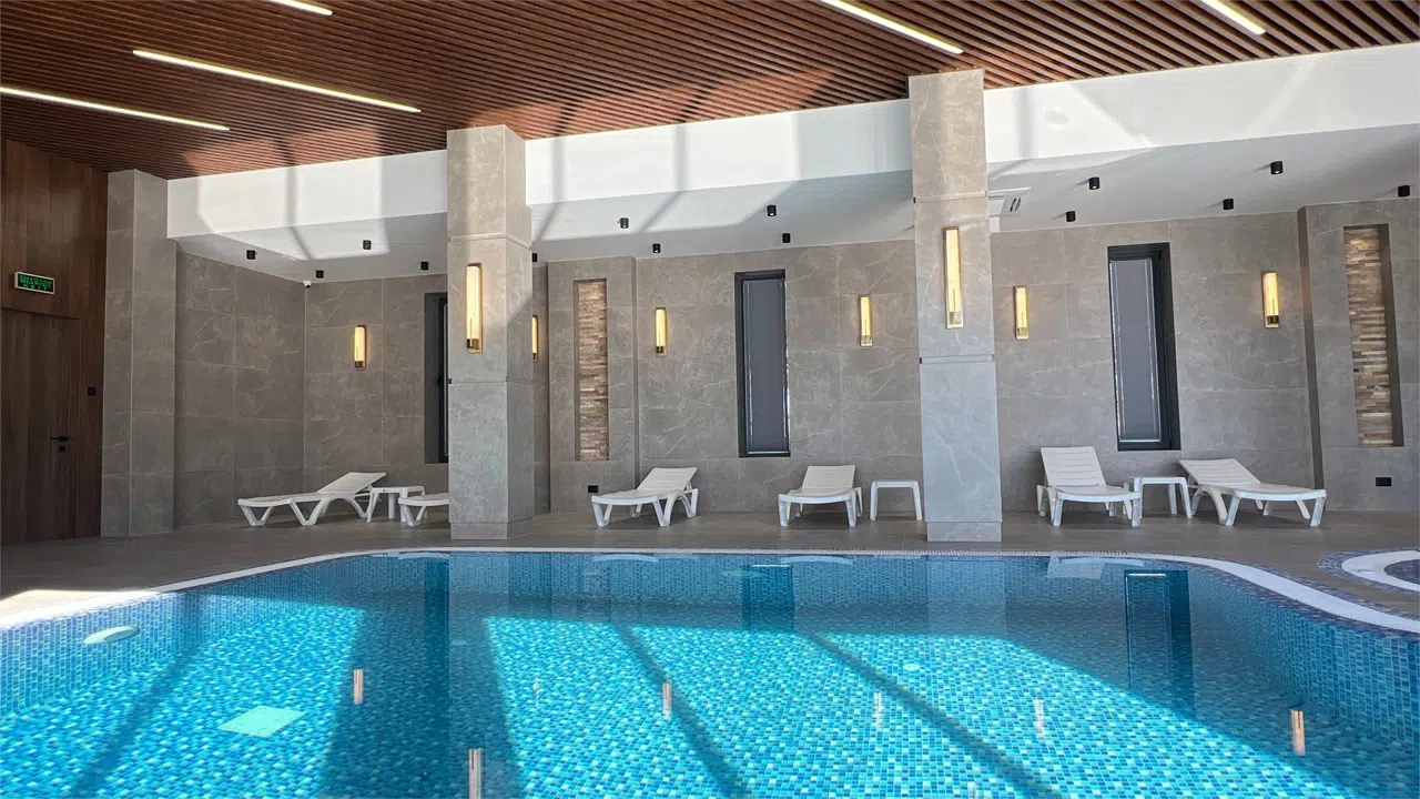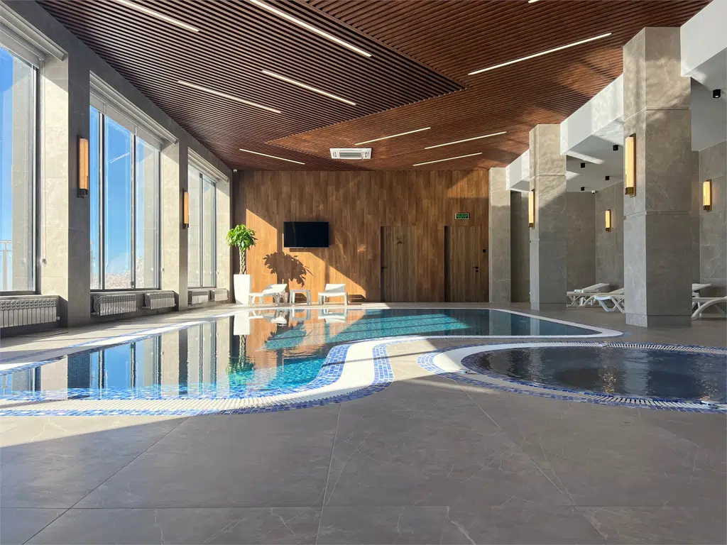 Погрузитесь в атмосферу чистоты, легкости и релакса! Наш бассейн — место, где вода снимает усталость, тело наполняется энергией, а мысли становятся ясными. Комфортная температура воды, идеальная чистота и внимательный персонал создают условия для вашего полного восстановления и удовольствия. Также к услугам гостей сухая сауна и хаммам.